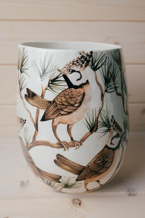 Crested Tit | Porcelain vase -